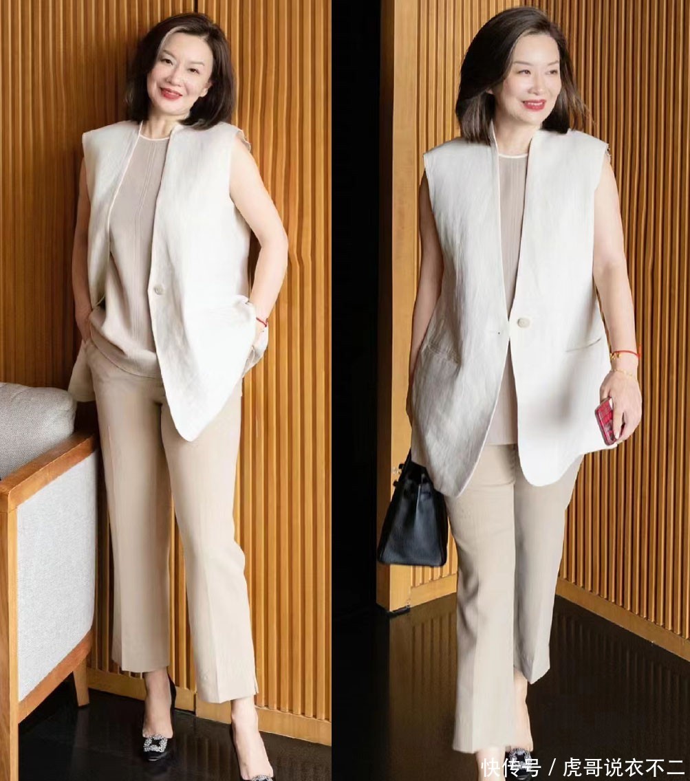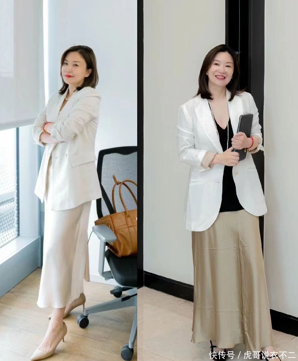 许多中年女东说念主在早秋塑造通勤装时,齐会将西服外衣放在优先地位,而在与下装搭配时,不错把柄个东说念主审好意思感编削。