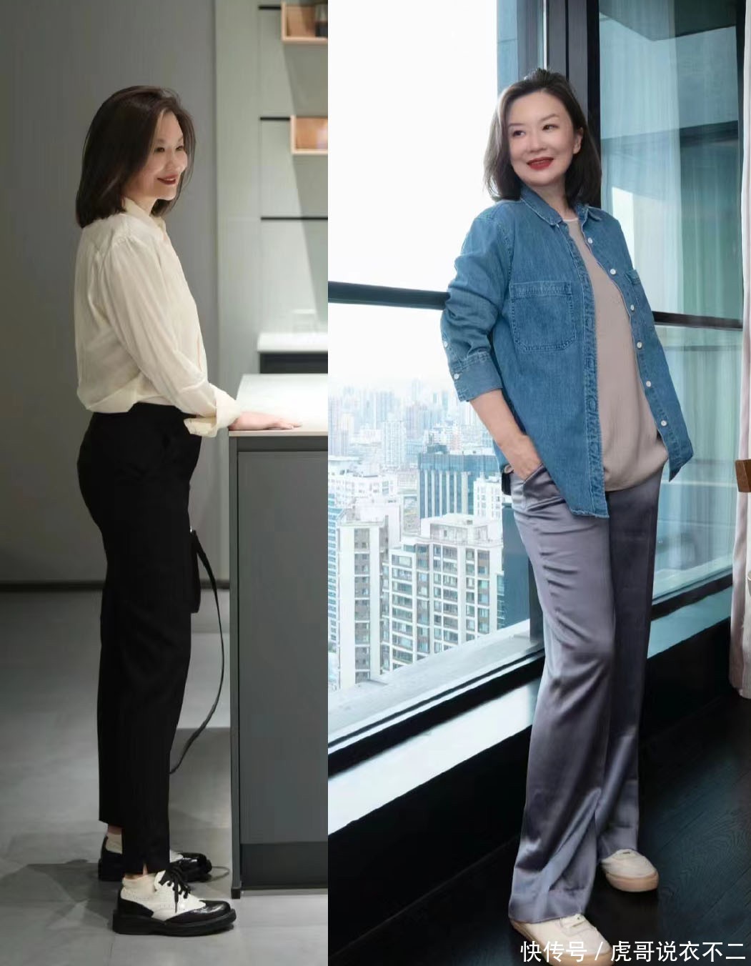 齐知说念裤子一向是考研腿型与比例的单品,那么为了不暴显现自己的纰谬,遴荐宽松款天然是主流。当裤子不紧贴腿部肌肤的技巧,也就意味着不错粗率腿部时弊,天然中年女东说念主衣着起来就会嗅觉更宽解、更稳定。