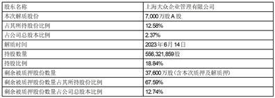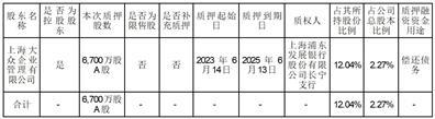 环球企管于2023年6月14日将捏有的原质押给上海浦东发展银行股份有限公司长宁支行的本公司7,000万股A股股票根除质押。