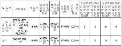 上海环球公用劳动(集团)股份有限公司(以下简称“公司、本公司”)控股鼓吹上海环球企业处理有限公司(以下简称“环球企管”)捏有本公司股份数目556,321,859股(其中:A股:495,143,859、H股:61,178,000股),占本公司总股本比例18.84%。本次根除质押及质押完成后,环球企管捏有本公司股份累计质押数目376,000,000股A股股份,占其捏股数目67.59%。